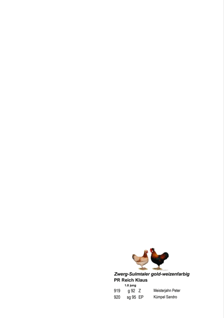 In den fünfziger Jahren des vergangenen Jahrhunderts erzüchtete Hans-Joachim Webers aus Isernhagen bei Hannover dieses Interessante Zwerghuhn. Eine zu kleine Sulmtaler-Henne und verschiedene Zwerg-Huhnrassen standen Pate. Nach einigen Jahren war es dann so weit, dass der erste Farbenschlag, die Weizenfarbigen, zur Anerkennung gebracht werden konnte. -weiter lesen-