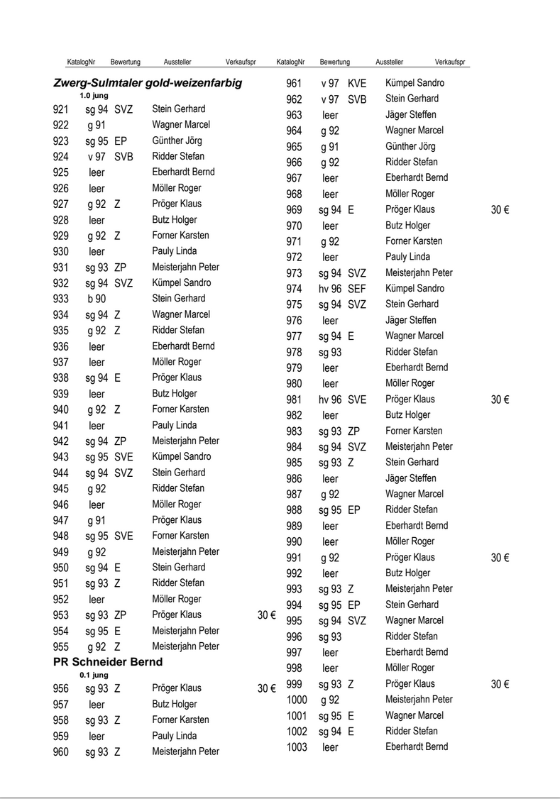 Nachdem in den letzten Jahren mehrere HSS abgesagt wurden, freuen wir uns, dass wir kurzfristig an der 38. Werratalschau, die am 9.11. und 10.11.2024 in Barchfeld stattfand, unsere Schau anschließen konnten. Unsern Dank gilt dem Ausstellungsleiter Marcus Beck und den fleißigen Helfern, durch diese eine solche Schau ermöglicht wird. Mit der Merzweckhalle boten sich hier super Bedingungen für Mensch und Tier. Ich war froh, als ich das Meldeergebnis hörte und das es doch 107 Tiere geworden sind. Nach den Gesprächen zur Sommertagung und mehreren Telefonaten, stellte sich heraus, dass der Ein oder Andere doch bei der Aufzucht weit weniger Tiere aufgezogen hat wie die Jahre zuvor. -weiter lesen –